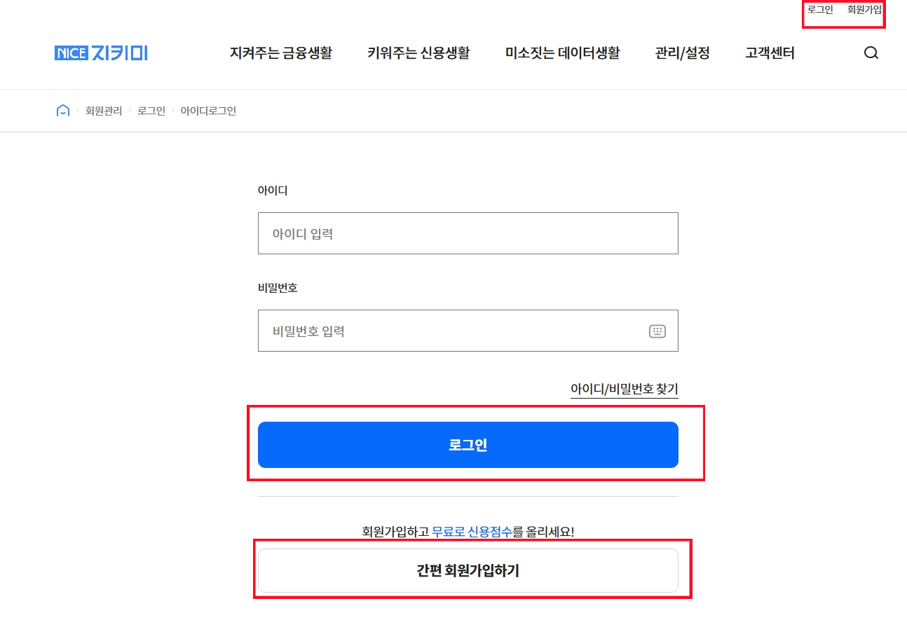 Step 1. NICE 지키미 접속 후 로그인