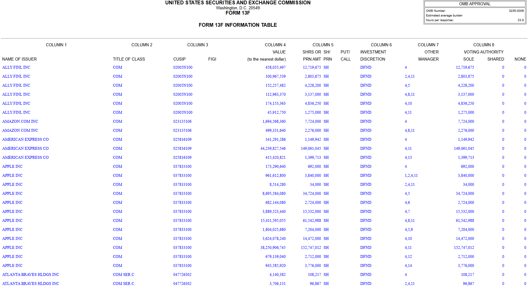 Company : BERKSHIRE HATHAWAY INC