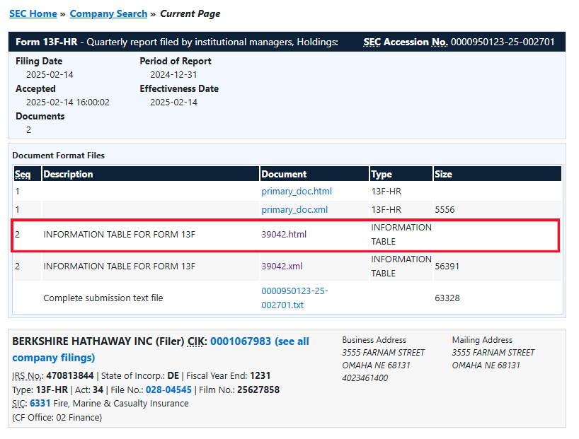 저도 처음에 찾았을 때는 이리저리 헤매고 했는데 이제는집 앞 마실 가는 거처럼 쉽게 들어갈 수 있어요 버크셔 해서웨이 뿐만 아니라 다른 투자 기업들의 포트 폴리오도 SEC 보고서를 통해 알 수 있으니 실습 한 번 해보셔도 좋겠네요!