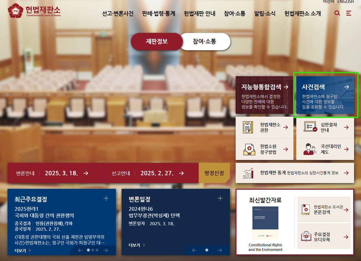 헌법재판소 공홈에서 탄핵 사건 검색하는 방법
