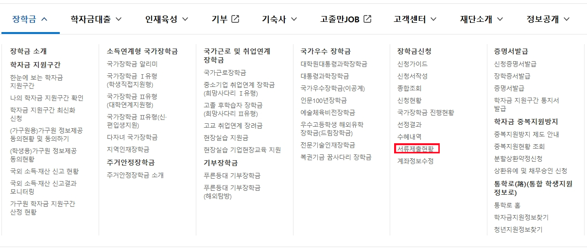 [장학금] > [장학금신청] > [서류제출현황]